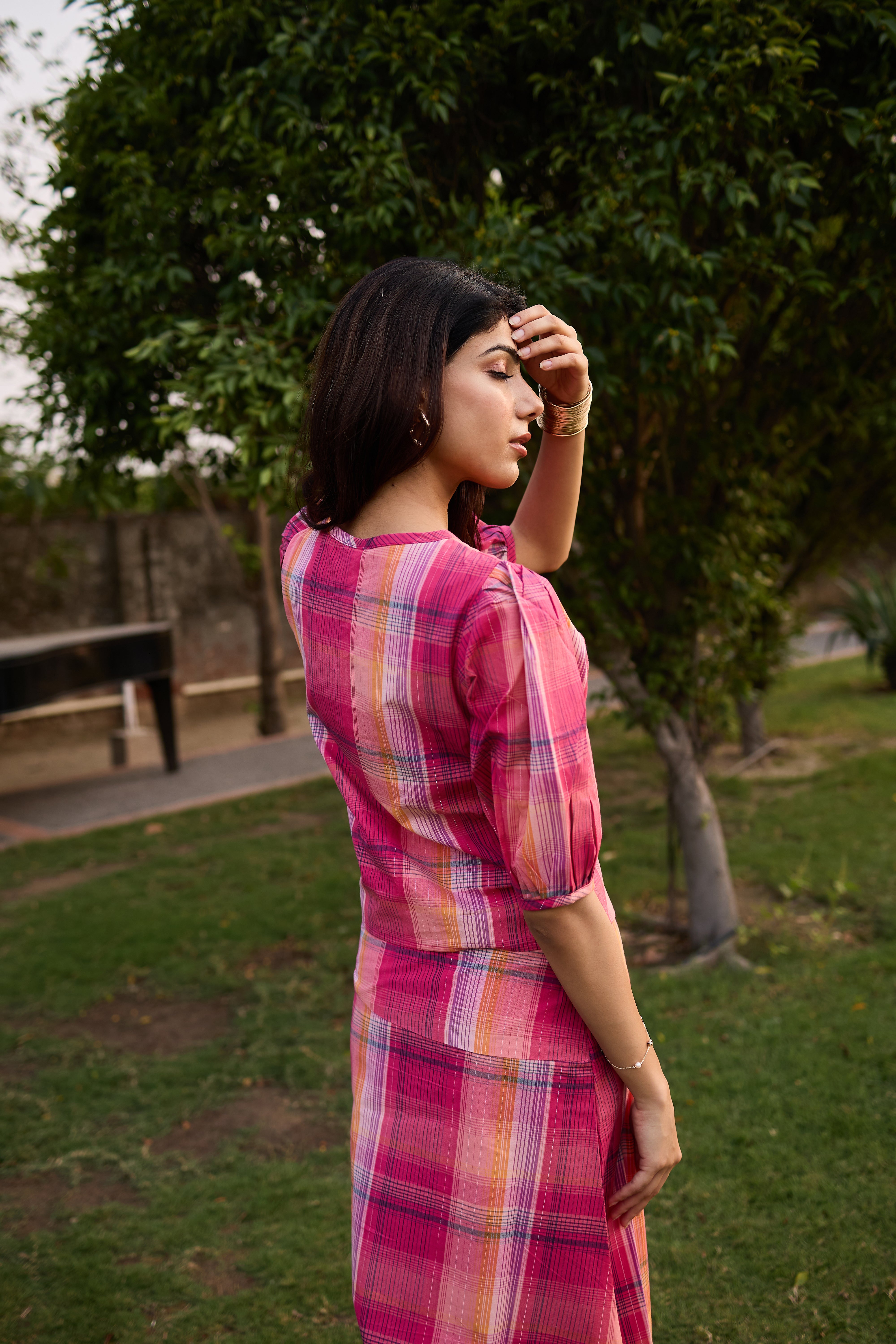Each piece is made with care — hand-stitched by skilled Indian artisans and crafted from thoughtfully chosen fabrics. Our designs marry modern trends with subtle desi touches, so you can feel contemporary yet connected to tradition.